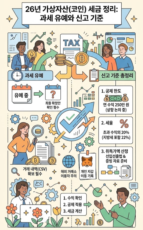 26년 가상자산(코인) 세금 정리: 과세 유예와 신고 기준