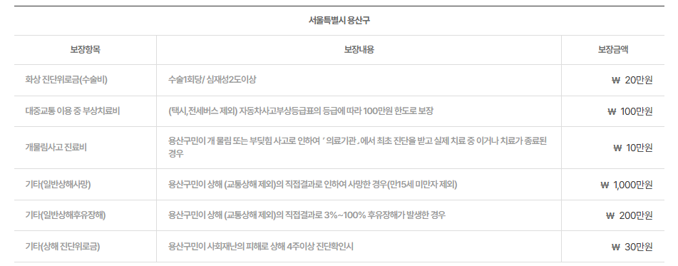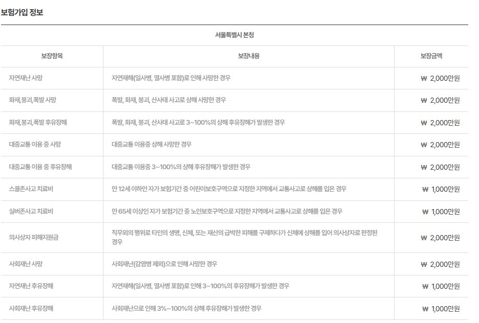 하지만 제가 서울에 산다는 이유만으로 최대 2천만 원짜리 상해보험에 이미 가입되어 있었습니다. 심지어 보험료는 0원, 구청에서 다 내주고 있었고요.